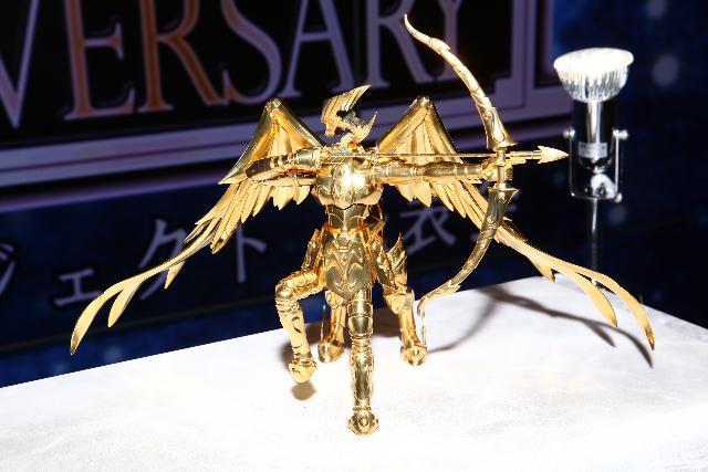 去る5月15日、「聖闘士聖衣神話発売10周年記念」の盛大なるイベントが都内某所で開催されました。私、岡田以蔵も、訪れた多数の取材陣とともにバンダイさんが次々と発表する10周年記念の商品&企画の凄さに興奮しっぱなしでした!中でも思わず目を丸くしたのが…ななな、何と!すべてが純金で出来ているというサジタリアス!!!もちろん非売品ではありますが、6000万円は下らないらしいとか!そして、この10周年イベントは、日本を皮切りに全世界約10エリアを6カ月かけて巡るという壮大なものになるそうで、ならば純金サジタリアスの警備係として世界一周のお供がしたいなとつい邪念を抱いてしまった私、岡田以蔵でありました。