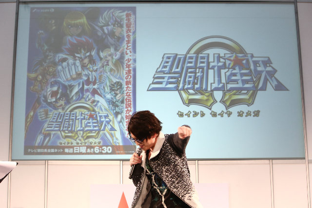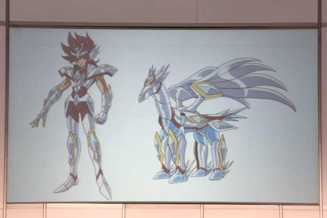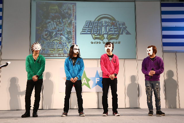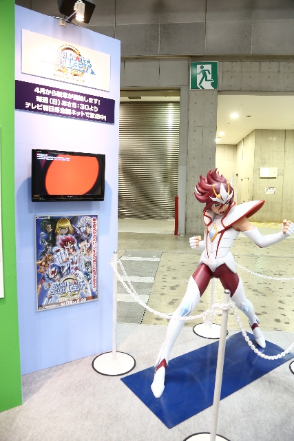 去る3月24日。私、岡田以蔵は東京ビッグサイトにて開催されていた『東京国際アニメフェア2013』に行って参りました。その目的は、もちろん『星矢Ω』トークショー!光牙役の緑川光氏も「ペガサス流星拳!」と、のっけから小宇宙全開!!4月からの新章では「聖衣」も一新!そのオブジェ形態も初公開され会場も騒然!新オープニング曲「未来聖闘士Ω~セイントエボリューション~」を担当する流田Projectの面々も登壇。大型スクリーンの映像を観ながら、「子どもの頃から観ていた『聖闘士星矢』の主題歌を唄えるなんて感激してます!」(ボーカルの流田豊氏)と、喜びを露わにしておりました。ちなみに彼らは、ライブ中も全員がマスクを着用しているそうですが、ライブで星矢の歌を唄う際には(流田氏の)マスクもペガサス仕様に変わるとのこと。トークショー終了後、館内のブースを見て回ると東映アニメブースに、等身大の光牙フィギュアを発見!精巧かつ躍動感あふれるその出来は、まさにお宝もの!いずれ是非、車田ミュージアムに寄贈を嘆願しようと心に期する岡田以蔵でありました。