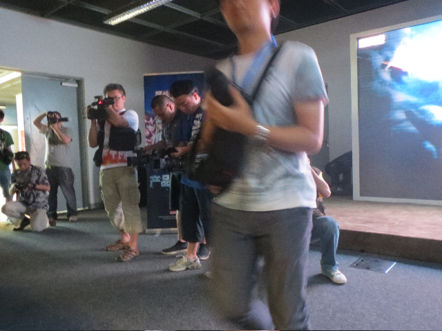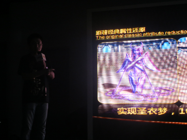 そのブースでは日本の「SEGA」社と、中国の大手企業「完美世界(パーフェクトワールド)」社共同開発のゲーム「聖闘士星矢オンライン」の制作発表が華々しく催されていたのでありました。先日のフランスでの人気もさることながら、「聖闘士星矢」の知名度は、中国でも別格!記者会見の場には無数の報道陣が押し寄せており多忙の車田先生の代わりに、恐れ多くも出席した御側用人のそれがしにまで取材カメラが!人生初のテレビカメラを向けられ硬直しっぱなしの岡田以蔵ではありましたが今回の上海でも、世界のファンに愛されている車田先生の作品の影響力に驚くとともに、御側用人の一人としてではありますが、車田先生にたずさわらせて頂いている事への有難き幸せを感じさせて頂いたのでありました。上海の皆様、謝謝!!!